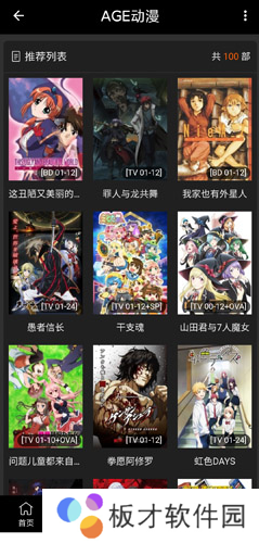 3、推荐页面:会推荐前100部受欢迎的动漫;
