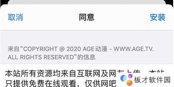 6、确认同意相关的IOS权限,点击安装就能完成age动漫ios的下载过程。