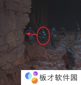 按照上图箭头往下跳两层后,应该落在一条山路上,然后按照上图箭头表示方向前进,可以看到前方有一堆雕像站在路边。