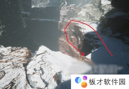 从第三回【小西天-浮屠界-经筒外】土地庙往BOSS【魔将·妙音】所在位置的桥走,到悬崖边右转可以看到前方岩壁上凸出了一些大石头,这些石头是可以踩着往下跳的。沿着石头往下跳,按照下图箭头方向前进。
