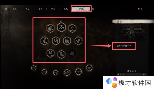 下图描述变化升级的效果是一直存在的,不需要变化成相应人物也是有效果加成的(如增加防御,这里是永久增加15)