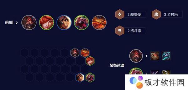 2-1升4级,2-5升5级,3-2升6级,4-1升7级,此时开始D卡,找到天选二星沙弥啦以及其他卡的二星,随后追出三星沙弥啦和厄加特即可上人口,补充裁决或者格斗。当然尽可能追出更多的乡村乐棋子,人**属性会增加。