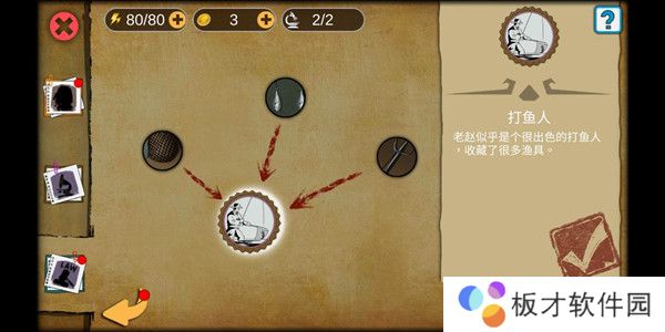 注意左下鱼篓鱼叉为两条线索。