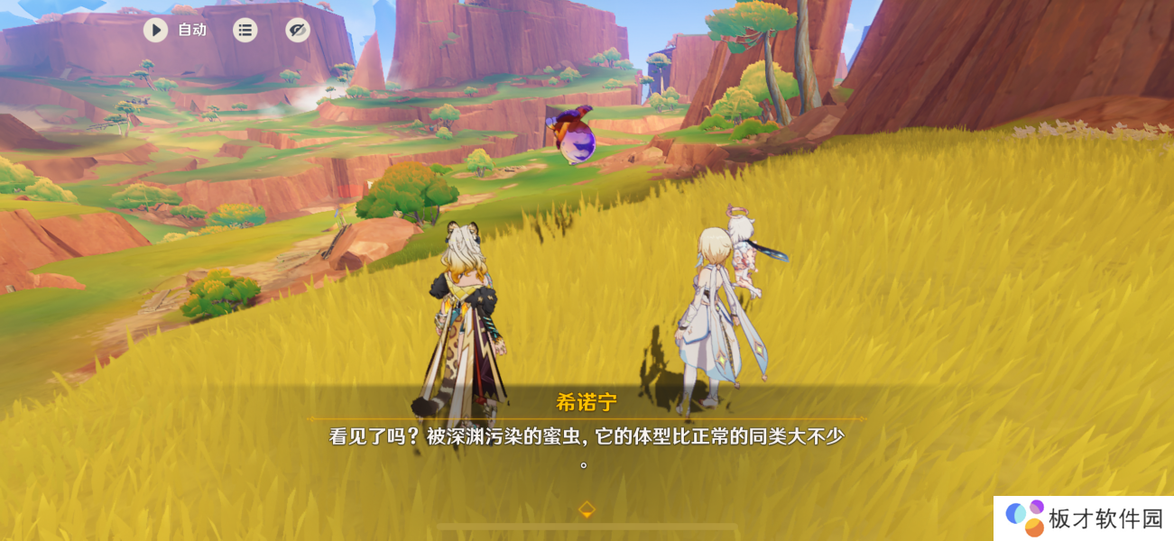 2、然后会看见蜜虫,蜜虫的周围会被一个花所吸引,我们把花打掉之后会掉落可以补充我们捕虫网进度条的东西。