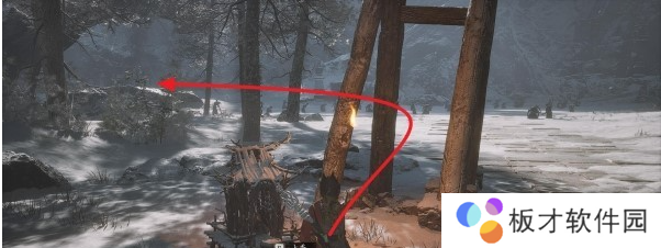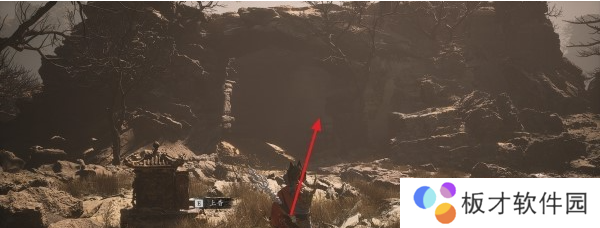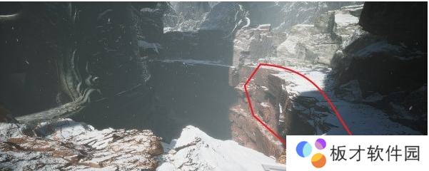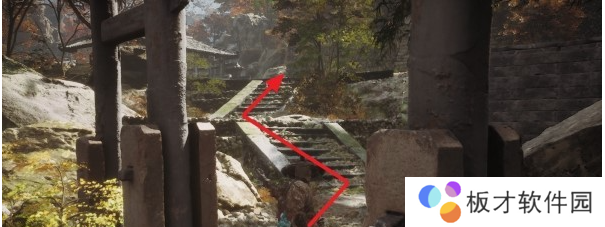 按照上图箭头往下跳两层后,应该落在一条山路上,然后按照上图箭头表示方向前进,可以看到前方有一堆雕像站在路边。