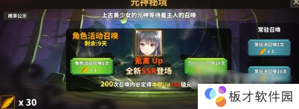 从主屏幕右上角可以进入“元神秘境”页面,此处可以抽到不同的元神角色,从屏幕右下角的“元神”进入详细的操作页面。