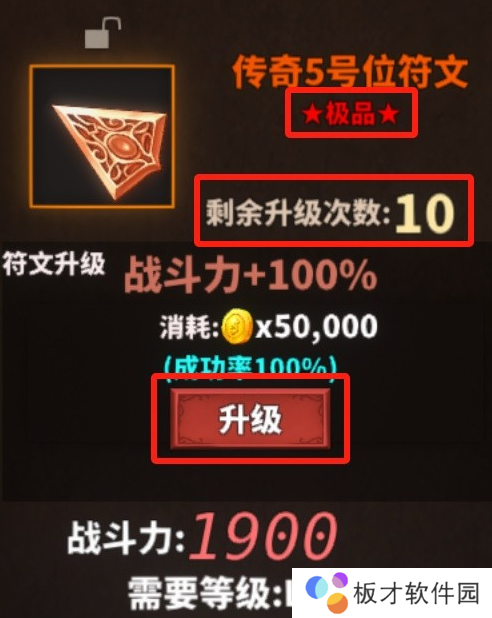 在背包中选择一个符文即可升级,每个符文只有10次升级机会,如果中间升级失败就会导致这个符文无法到达+10等级,这个符文也就废了。