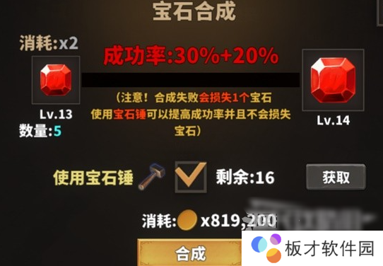 使用宝石锤可以增加宝石合成的成功率并且失败也不再损毁宝石。
