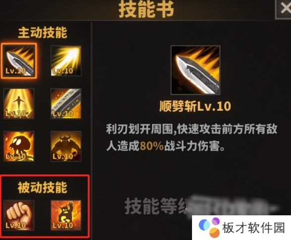 技能分为主动技能和被动技能,需要注意的是只有提升被动技能的等级才会提升战力。