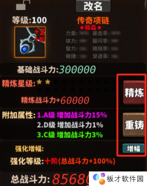 最后下图的增幅对应上图的强化增幅,消耗材料与金币可以刷增幅的幅度,刷到90%以上即可停止。