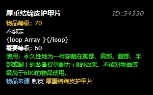 4、需要前置条件皮革等级350,重结缔皮护甲片物品等级为70级。