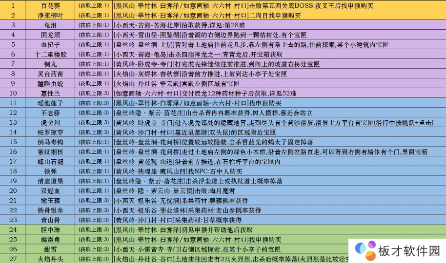 特品:通常具有较为显著的效果,如增加攻击力、防御力等,如铜丸、十二重楼胶等。