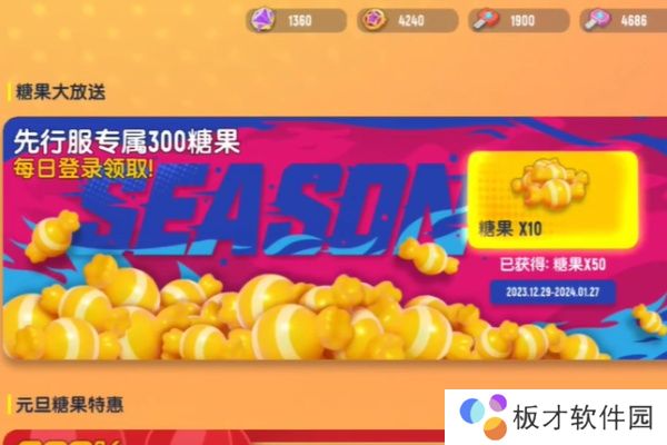 1、新赛季版本福利,玩家只需要登录六天免费白嫖100糖果。