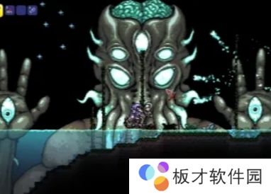 5、当月总眼睛的血条被打光的时候,它会飞出来变成“克苏鲁真眼”,双手和头部存放眼睛的缝隙生成触碰伤害;