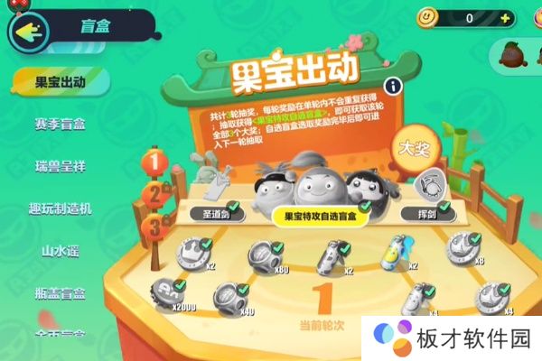 2、其次在盲盒界面中找到果宝出动,即可看到抽奖界面。