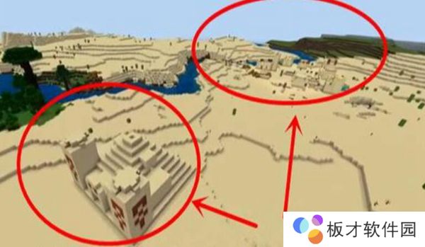 这张地图上的沙漠神殿却都非常的好寻找,有2个沙漠神殿甚至跟村庄相连。
