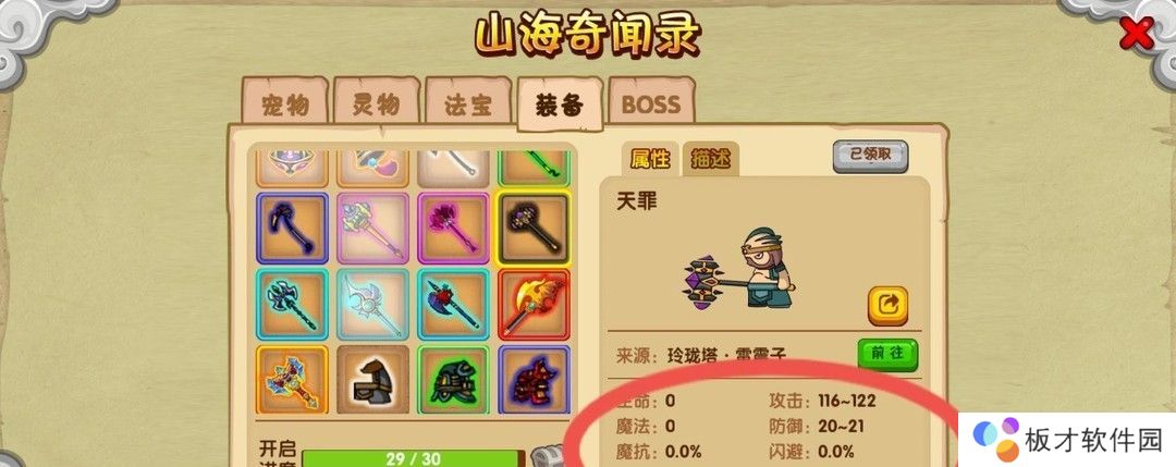 1、大家下列图的猪八戒装备举例。邪灵武器天罪最大能够增加122进攻,21防御。