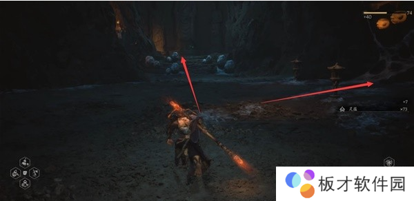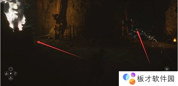 来到苦海北岸土地庙,向前直走进入山洞。