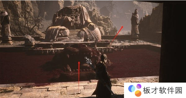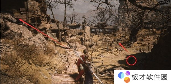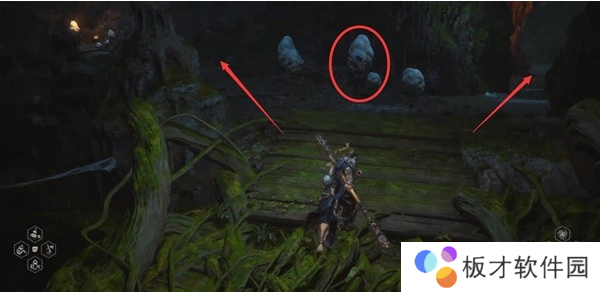 经过弓箭手后,往前走到头遇到木板,往下跳。