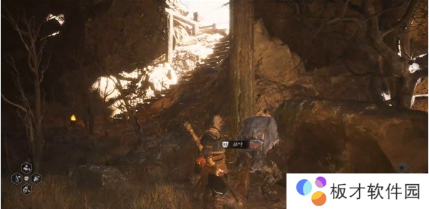上山走过木栈道,遇到土地庙。土地庙有新的物品可买。初始武器解锁另一条升级线“兽棍”,披挂铸造解锁【乌金套装】。