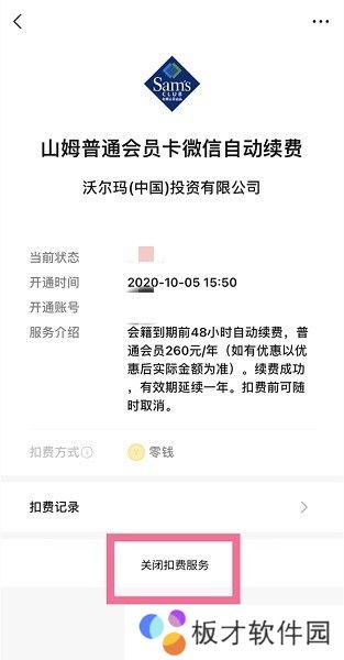 4、找到并挑选山姆会员商店,点击“关闭扣费服务”即可关闭自动续费。