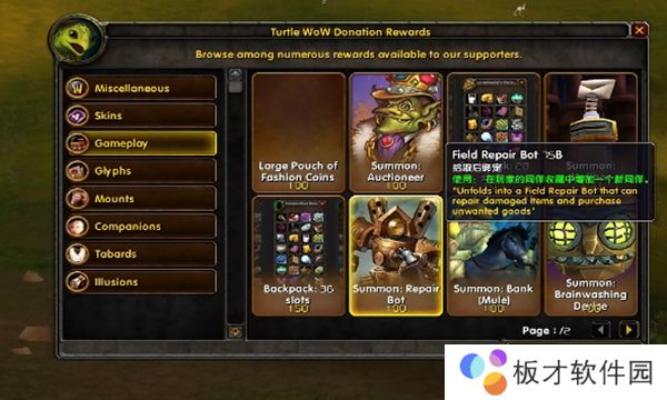 魔兽世界乌龟服中是有商人直售的一些道具能够购买,可买的种类有改名、种族皮肤、杂项道具、德鲁伊的皮肤、坐骑、宠物、幻化,想提高游戏体验只推荐双天赋、修理机器人还有大格数背包。