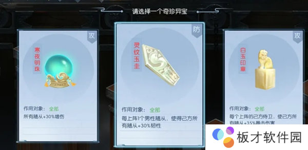 7、在“归墟山庄”玩法中,每获胜一场战斗,会随机弹出3个奇珍,玩家可以自由选择其中1个。