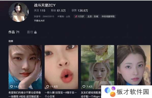 3、她在抖音的用户名是战斗天使zcy,目前已经拥有超过六十万的粉丝。对她感兴趣的玩家可以在抖音上搜索她的账号。