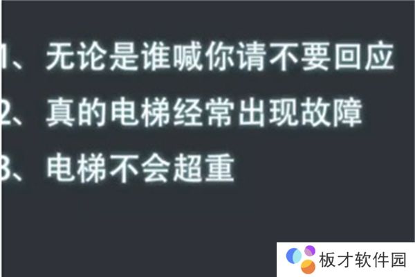 1、首先会了解规则:不要回应、电梯经常出故障、电梯不会超重。