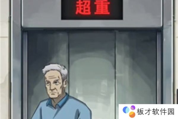 3、碰到下一班电梯,里面是一个老人,电梯显示超重不要上。