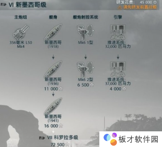 6级是美系战列舰非常强大的一个等级,拥有12门炮,但航行速度依然较慢。在这个等级,我们建议按照射程-船身-引擎-船身的顺序来提升科技。