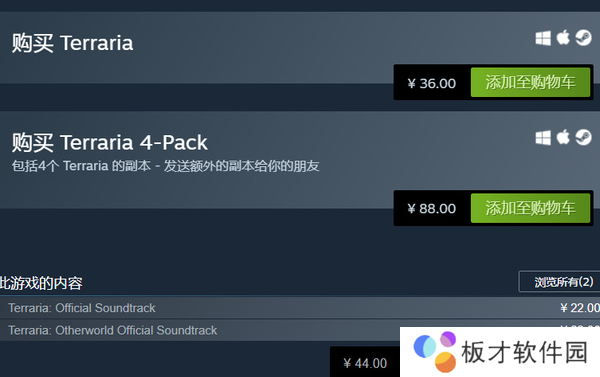 1、泰拉瑞亚的价格在steam商店中,泰拉瑞亚的价格为36元。