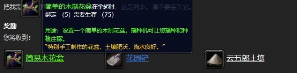 完成任务可以获得简易木花盆、花园铲和云五郎土壤*20,还可以得到2750经验值。