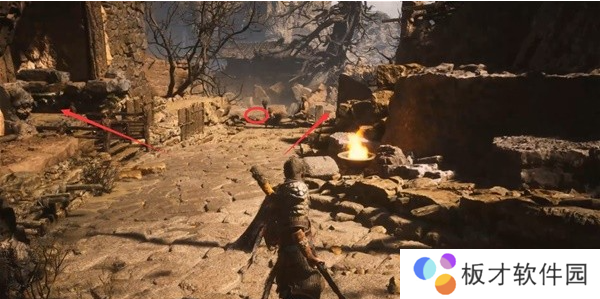 顺着河走到头,从有两个火盆的地方跳下山崖,来到瓜田土地庙。