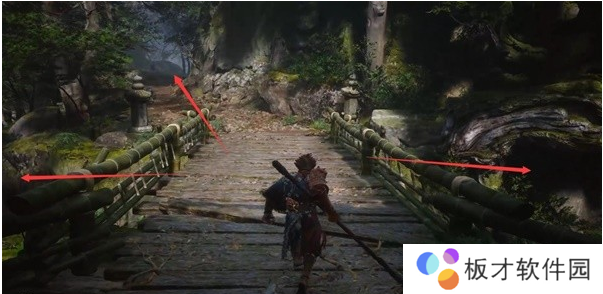 向左跳到桥下面顺着河流走,和直接过桥向前走,这两条路是相通的,等下再去。