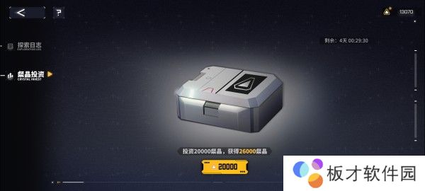 交错战线粲晶投资是游戏中的一种活动,性价比很高,非常建议各位玩家参与这个活动,因为玩家可以通过它将少量的粲晶直接换更多,最高档位好像是3w,注意开启七天之后就会结束了。