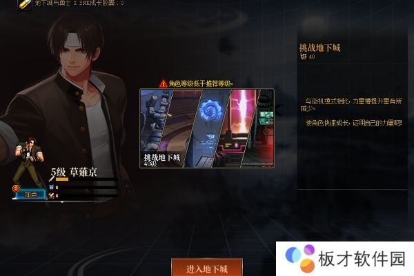 活动地下城只能单人进入,地下城模式分为锻炼解锁角色的街机模式和挑战自我的挑战模式。