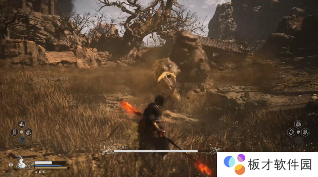 距离稍远时,石先锋的远程手段是扔两发石头,非常好躲,没有难度。