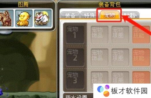 3、接着我们点击装备界面顶部菜单中的“宠物”选项。