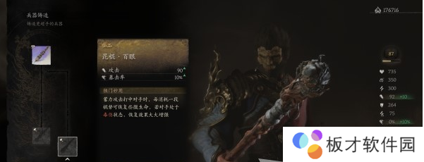 独门妙用:蓄力攻击打中对手时,每消耗一段棍势可恢复些微生命,自身处于毒伤状态时,还可令对手积累毒伤异常。