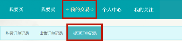4、提交提现信息之后,可以在我的交易,提现订单记录中查看提现的动态。