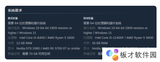 存储空间方面,推荐配置与最低配置相同,需要70GB的可用空间。