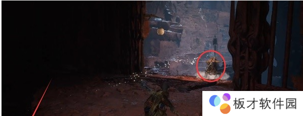 找路上楼,来到三楼“浮屠界-上层”土地庙,看到左边下面洞里有怪。先激活土地庙,然后从左边洞跳下去,先跳到中间房檐上,然后再跳到底部。