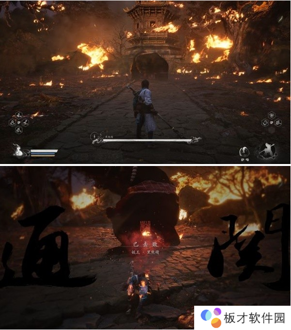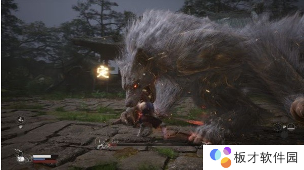 可能是黑猴第一个比较有挑战性的BOSS,熊瞎子的难点是:场地大范围的火带来燃烧不利状态、隐身后连续猪车,第一点就是隐藏法宝庇火罩的技能可以完破,第二点可以靠变身拖时长(开庇火罩也能大幅减伤)。