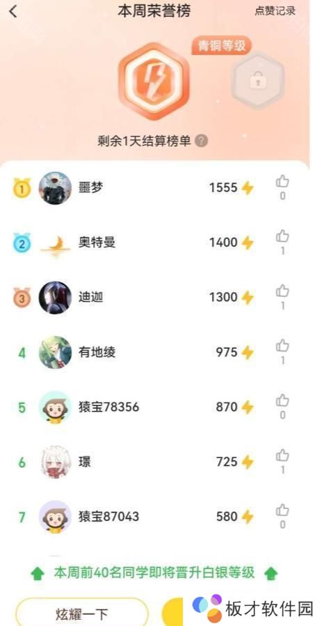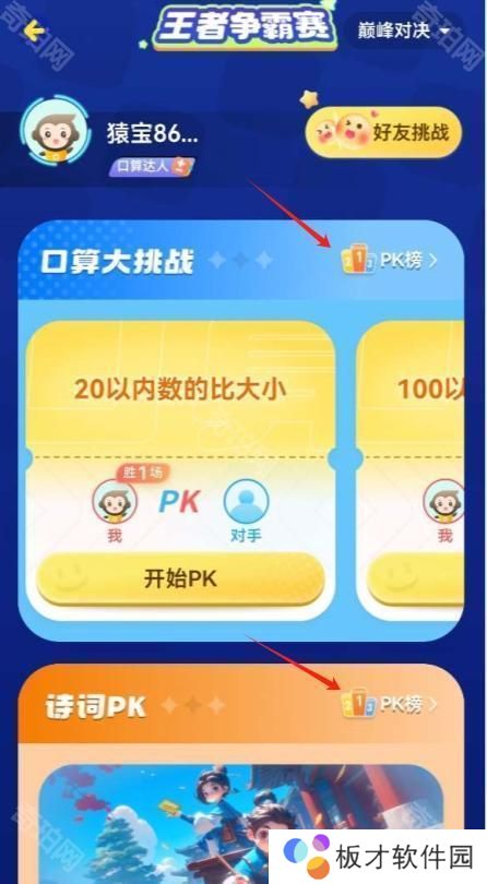 4、然后就可以查看不同口算之间的榜单了。