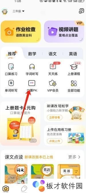 3、然后在检查页面点击页面中间的“口算pk”。