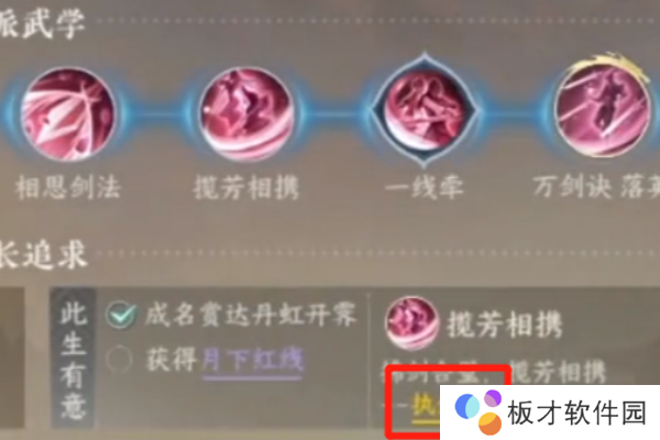 2、这里以相思门为例,在成长追求那一栏,往后拉,看到有标黄的NPC执剑人。