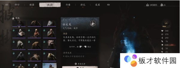 之后沿着唯一的路前进,进入一扇圆形拱门即可看到赤发鬼,击杀获得精魄。