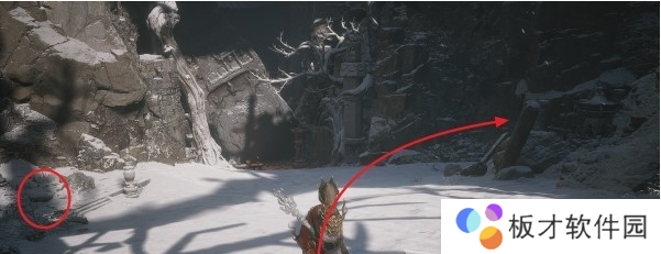 从第三回【小西天-苦海-戒语廊】土地庙出发,沿路往前走可以看到雪地里有个蒲团。