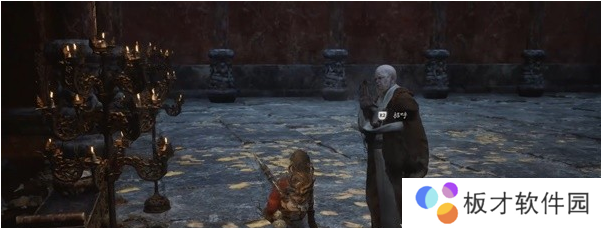 进入下图房间通过右侧楼梯上二楼直接右拐沿着右后方的大门一直走到最深处的房间,可以看到房间内有一个僧人。